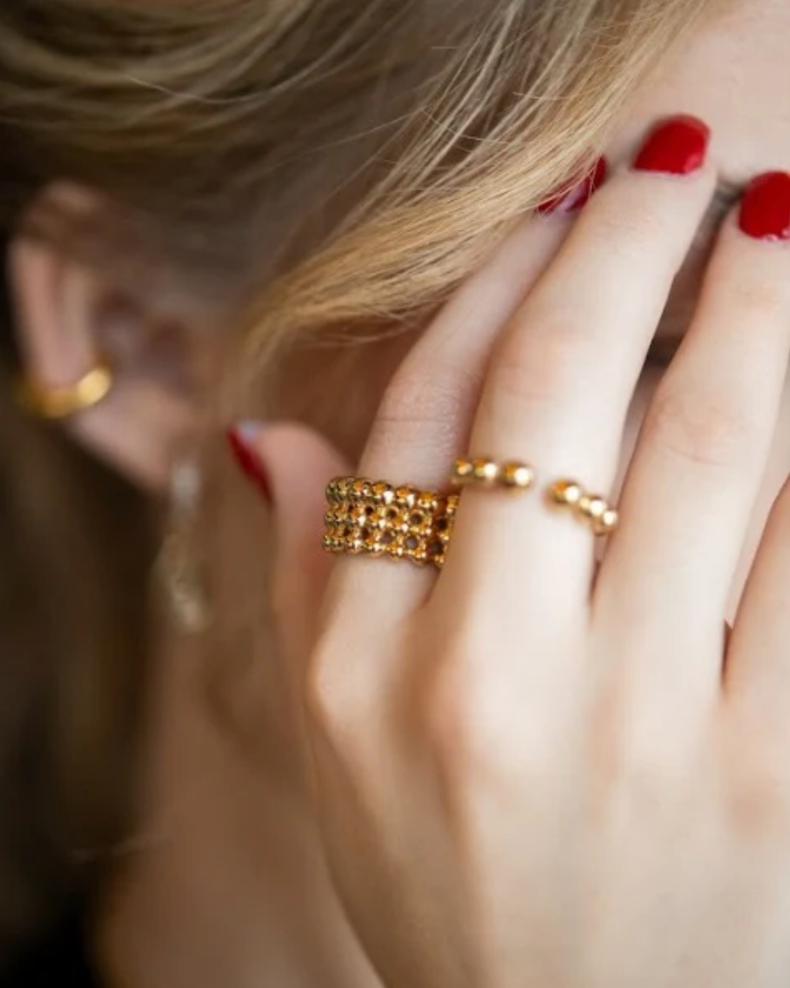 Anillo Bolitas Triple Dorado